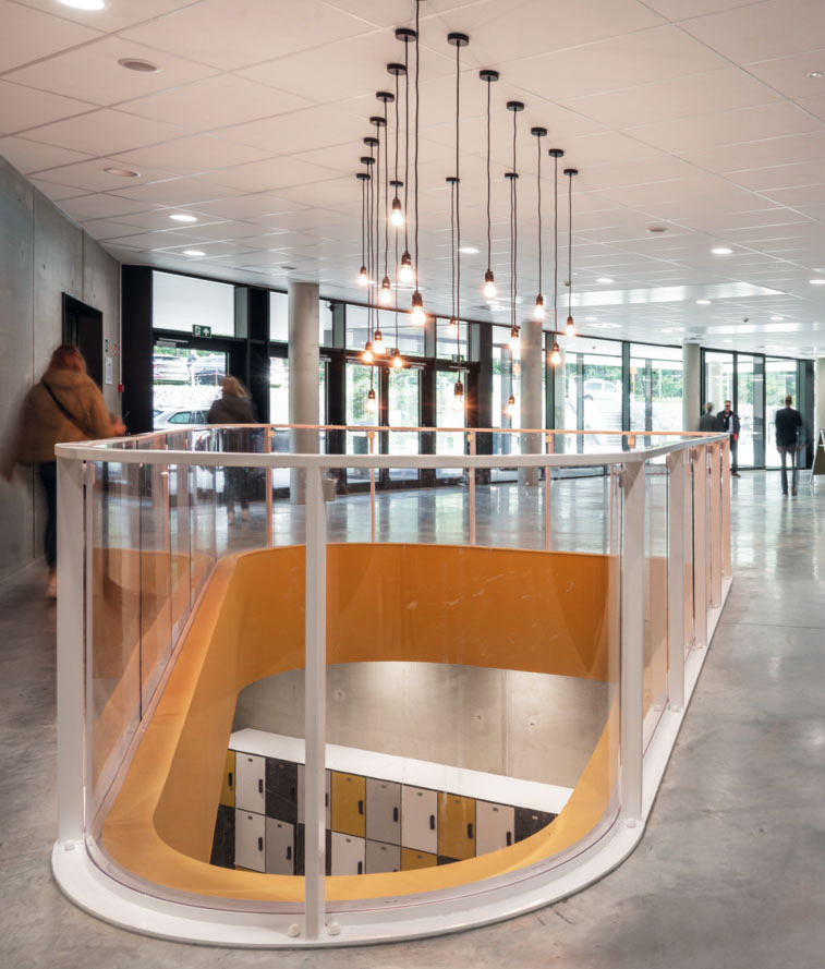 The building houses a gymnasium, an exercise lab, a medical centre for the Zolder racecourse, a spacious cafeteria with terrace, meeting rooms and offices. Furthermore, there are practical facilities such as changing rooms, storage and parking.