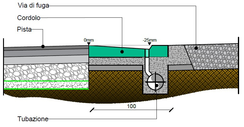 In questa ottica sono stati sostituiti e riadattati dal punto di vista plano-altimetrico tutti i cordoli presenti lungo la pista.