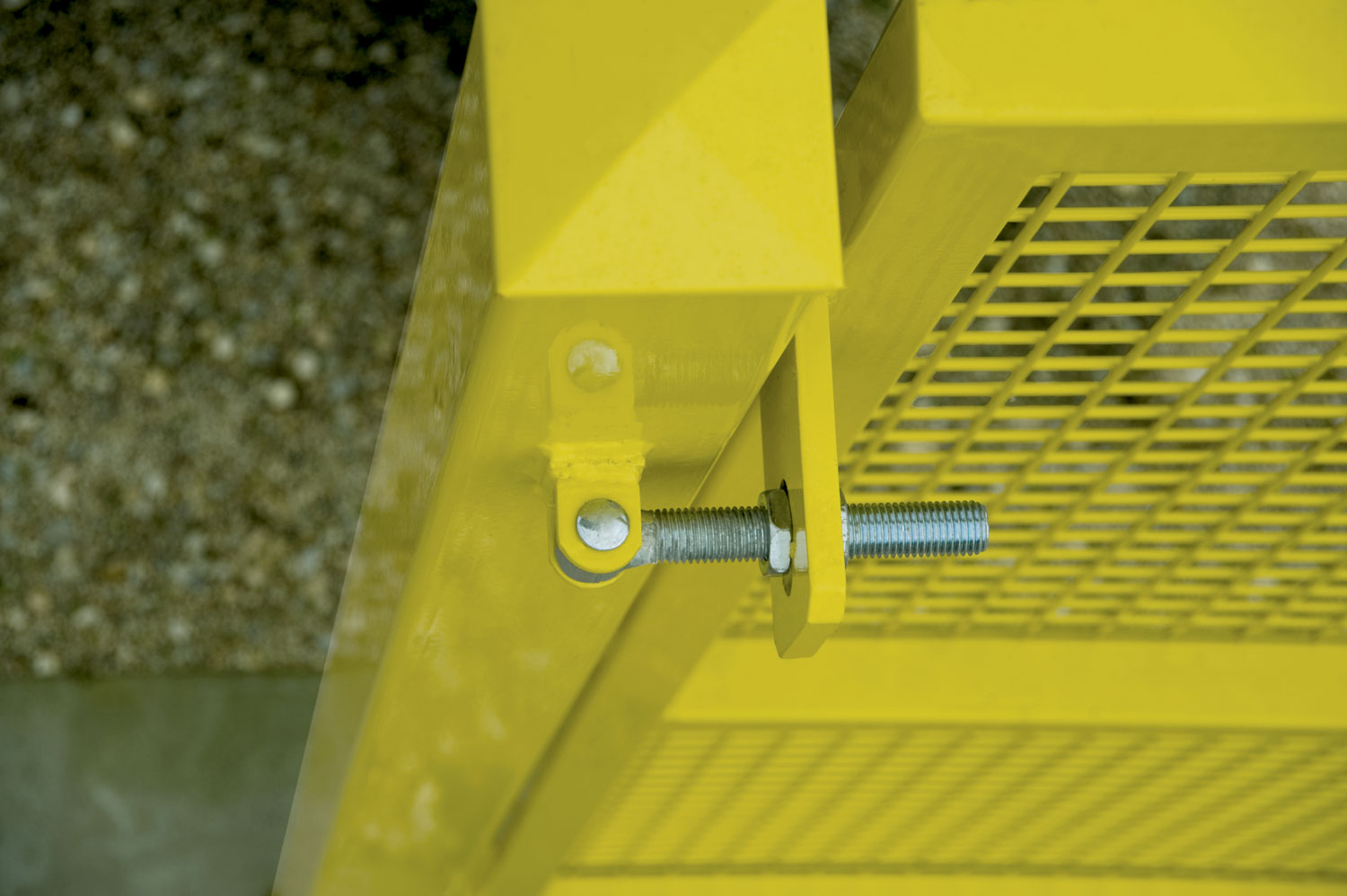 I cancelli pedonali e carrai sono realizzati in acciaio, plastificato giallo (RAL 1012), con telaio perimetrale e pali di sostegno, entrambi in tubo quadro d’acciaio, con specchiature in rete metallica elettrosaldata e componenti dei sistemi di chiusura in acciaio. I pali di sostegno sono corredati da cappucci in plastica nella parte superiore e da cerniere regolabili.