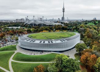 SAP Garden a Monaco ospita hockey su ghiaccio e basket in una struttura su 4 livelli fuori terra e 3 interrati, nel pieno rispetto del contesto protetto del Parco Olimpico.