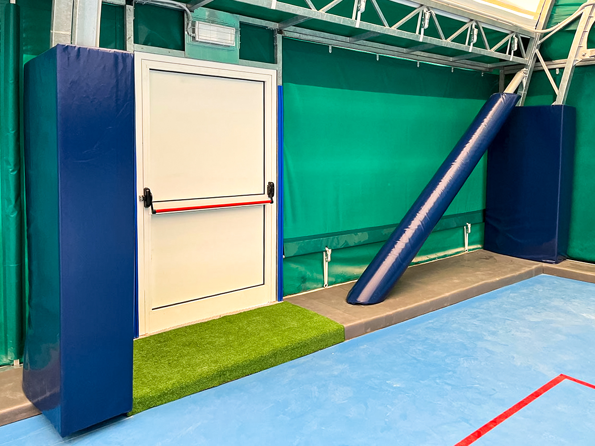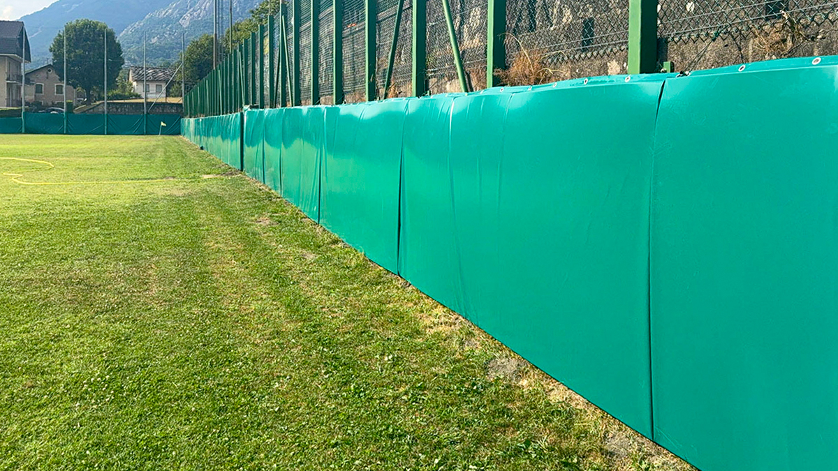 Custom-made padded protections with mats and cushions for walls, low walls, curbs, nets, and fences;