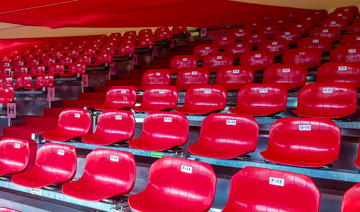 The “MATCH” seat is the preferred standard seating choice for temporary grandstands and installations at major sports and music events, confirming its reliability and ability to provide comfort and safety even in the most challenging situations.