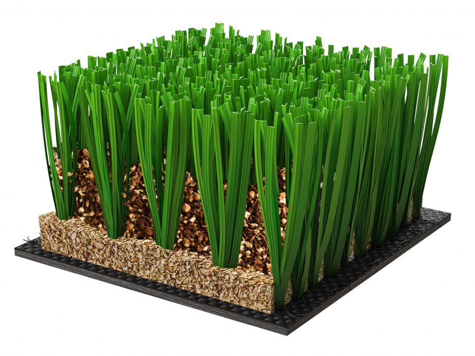 This technology, comprising entirely plant-based and biodegradable infill and Bio Green geotextile, makes the turf entirely recyclable at the end of its life.