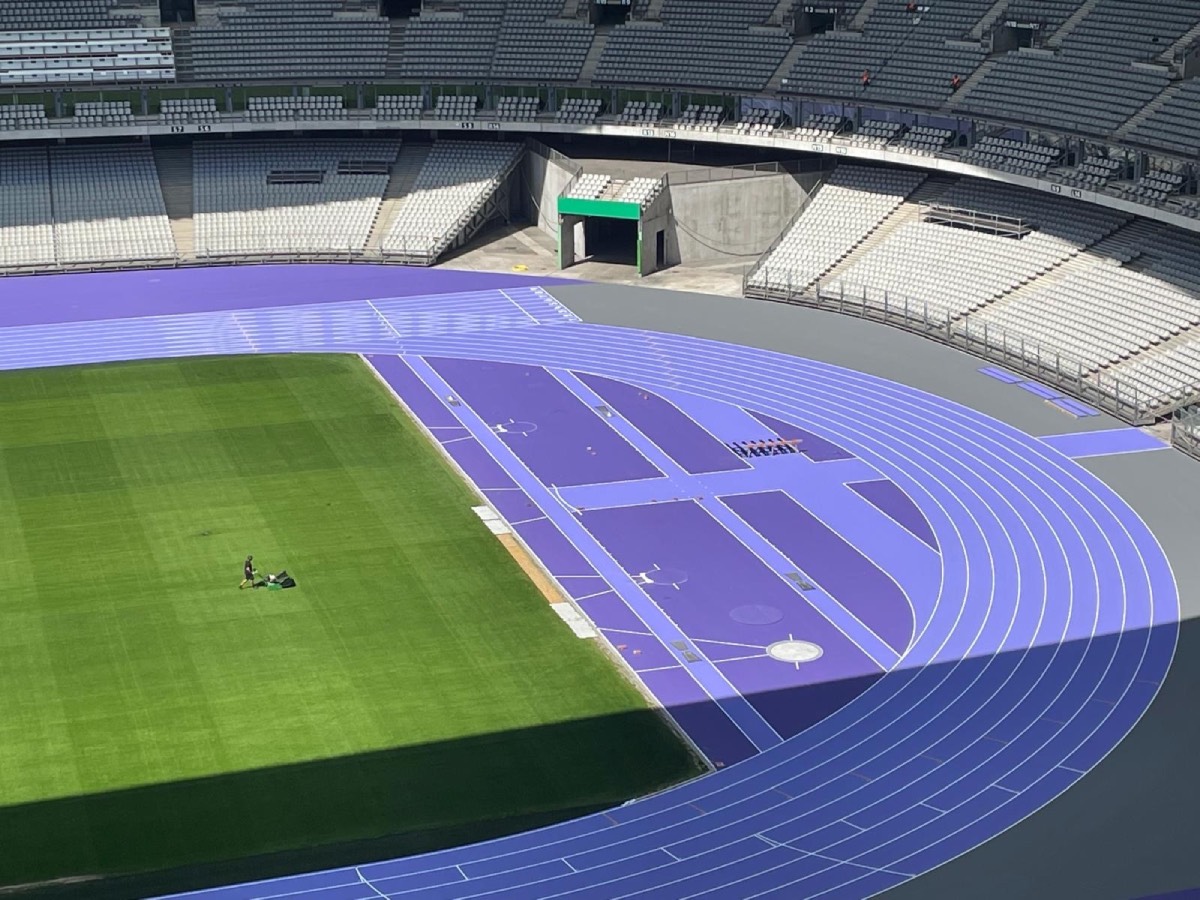 The purple turf of the Stade de France, visible during the Paris 2024 Games, was installed by the Mondo company: it is the MONDOTRACKâ„¢ with Ellipse Impulse technology.