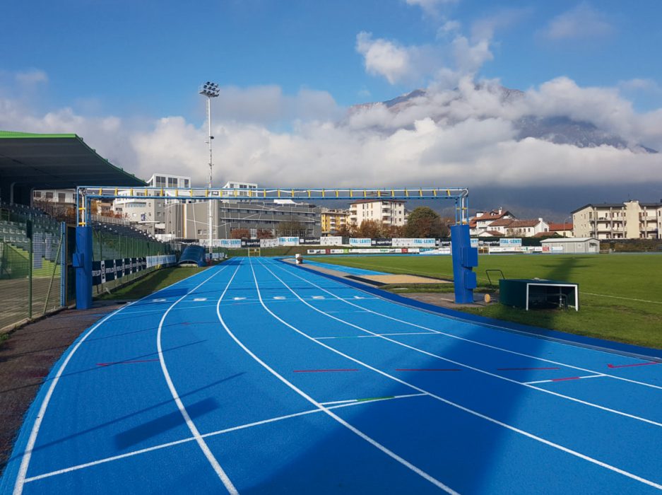 For athletes, the guarantee of a homogeneous, prefabricated base layer, as opposed to a poured-in-place layer, ensures uniform elastic response at every point on the athletic track. For the owner or operator, the prefabricated mat, which is much denser than the poured-in-place system, guarantees optimal resistance to athletes’ spikes and, consequently, long-lasting durability: an important factor for subsequent renovations in which, with this type of system, it is only necessary to intervene on the surface of the system, resulting in significant savings in terms of costs and intervention times.