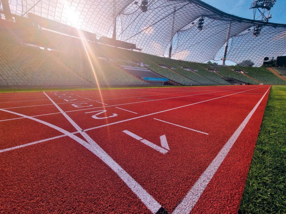 Olympiastadion track in Munich, renewned for European Multisport Championship in 2022.