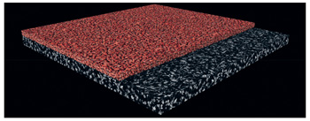 It can be applied directly onto recycled rubber matting, by bonding it to the substrate, or poured on site by mixing recycled rubber and polyurethane binder and laid with a special vibratory finisher.