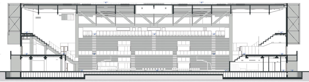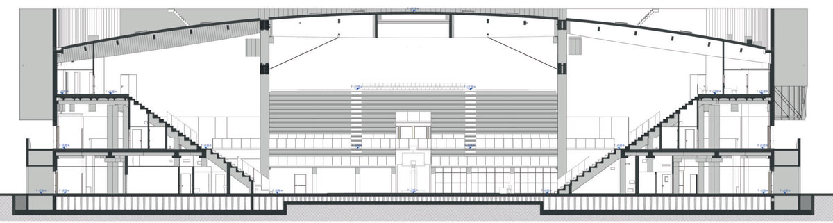 The focal point of the project of Cittadella dello Sport in Tortona is the new sports hall, the last to be completed, which will mainly be used for Bertram Derthona basketball matches but also for shows and concerts, with a covered area of approximately 5,030 square metres.
