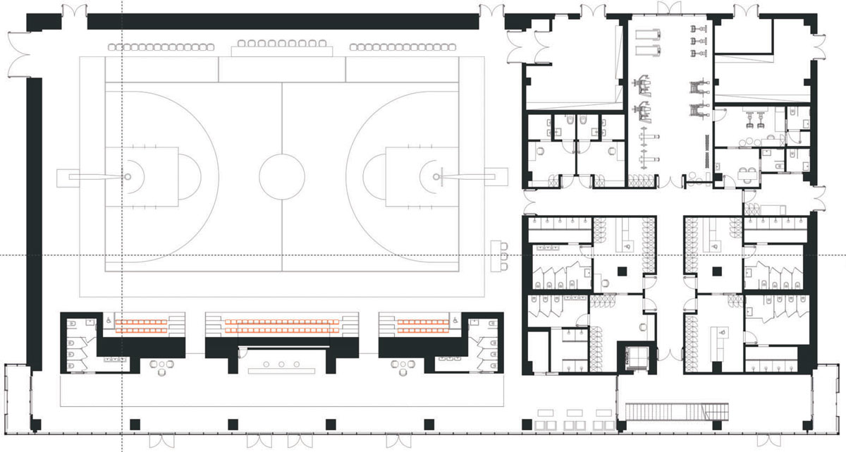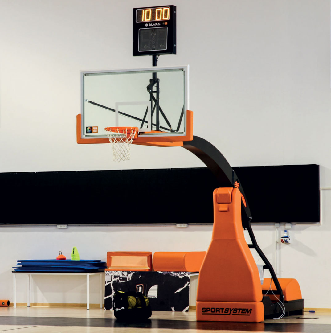 Furnished with the best equipment, the sports hall in the Cittadella dello Sport in Tortona offers a removable central basketball court, with the same characteristics as the maple parquet flooring laid in the gym hall.