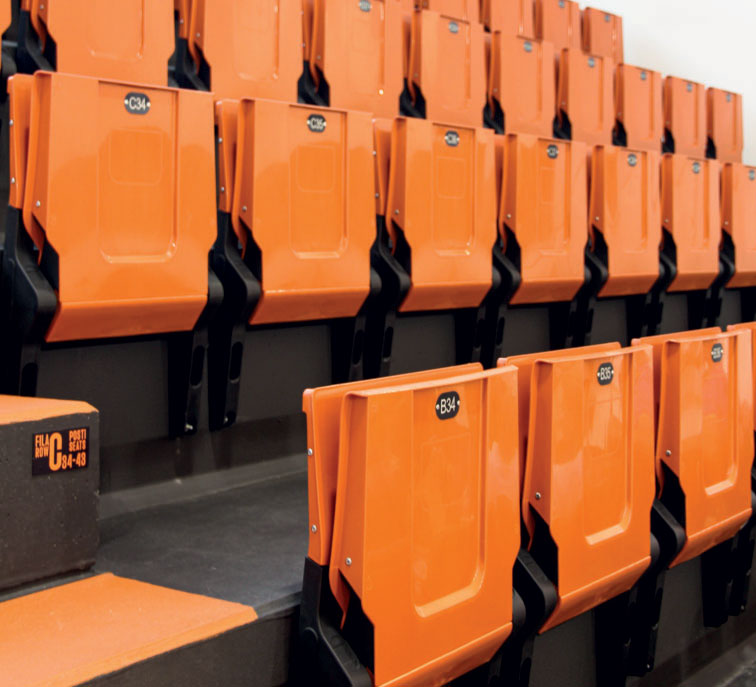 The stands have been fitted with 5,000 folding seats made from recycled plastic, certified PSV (Plastica Seconda Vita, or Second Life Plastic). High-strength glass parapets have been installed in the stands to ensure the safety of spectators without compromising visibility during sporting and other events.