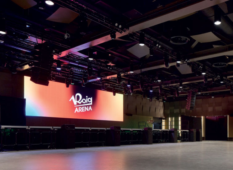 The Roig Arena in Valencia has the highest resolution video scoreboard in Europe. Its four flat LED screens with faceted edges allow for a continuous, uninterrupted image. In addition, it has two other screens inside that display additional information during events and matches.