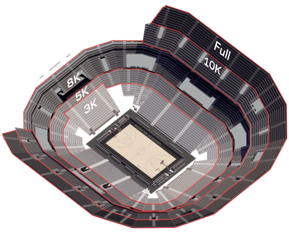As the new home of the Valencia Basket Club’s men’s and women’s teams, Roig Arena has 15,600 seats in basketball mode and a total capacity of up to 20,000 people in concert mode. Various seating levels, premium boxes and VIP spaces offer an immersive experience for attendees.