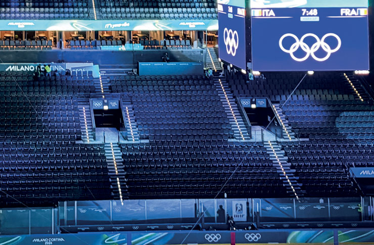 To create an even more immersive atmosphere, Europe’s largest indoor video wall, covering an area of 500 square metres, has been installed on the stands. Around the main courtyard, a 220-square-metre belt of LED panels extends along the entire perimeter.