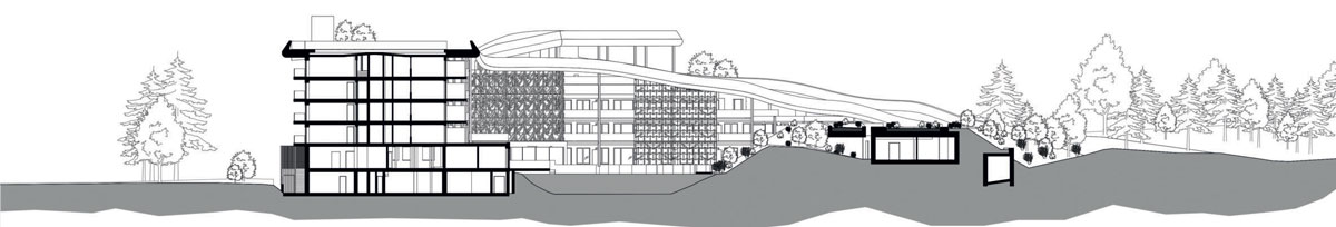 The Falkensteiner Family Resort Lido in Casteldarne (Chienes, Bolzano), a historic family hotel in the Pustertal valley has been extended and redesigned by studio NOA. The new wave deck embeds it into the landscape and makes it a place for sports and entertainment.