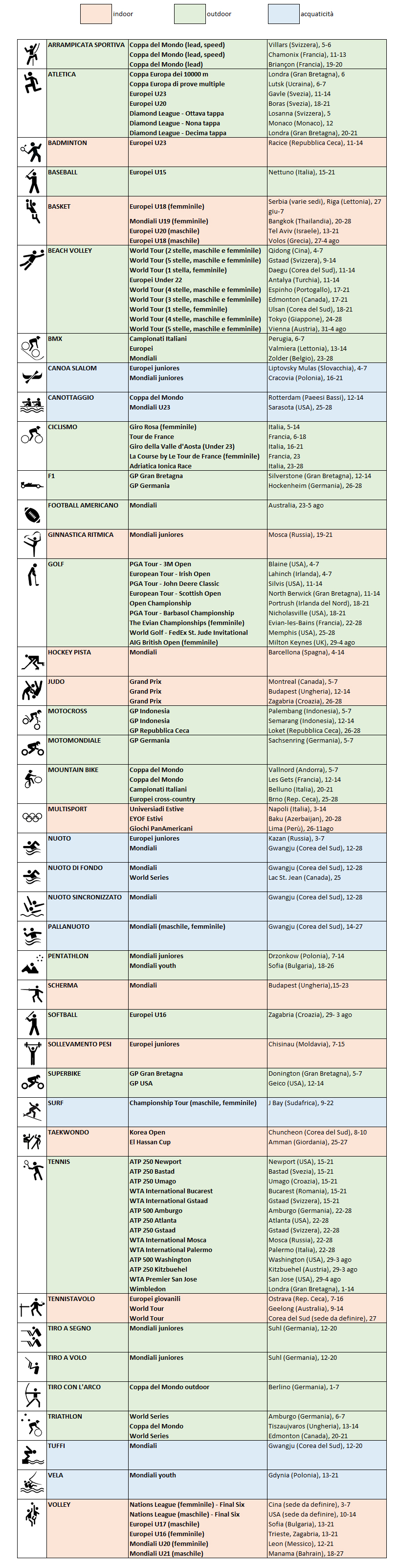 Ecco il calendario degli eventi sportivi più interessanti che si svolgeranno nel mese di luglio in tutto il mondo.