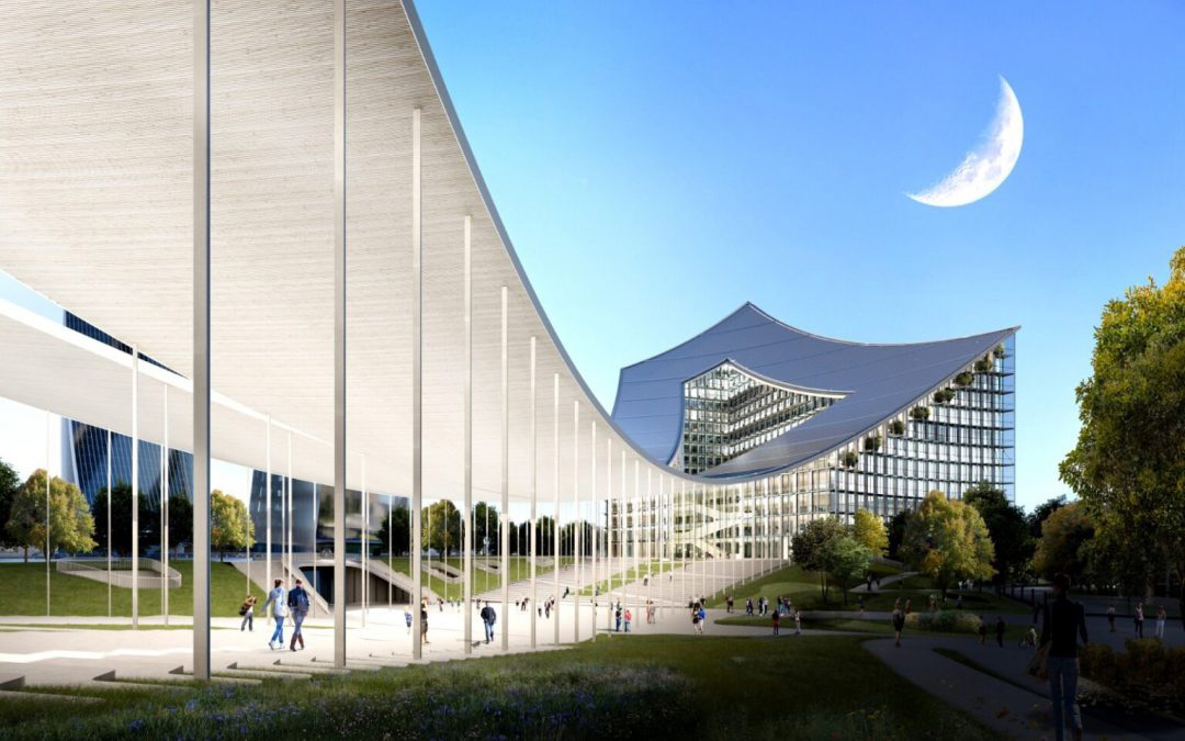 CityWave è una copertura che incornicia le Tre Torri e il parco e definisce uno spazio pubblico coperto, arricchito da arredo urbano e spazi verde, fruibile tutto l’anno.