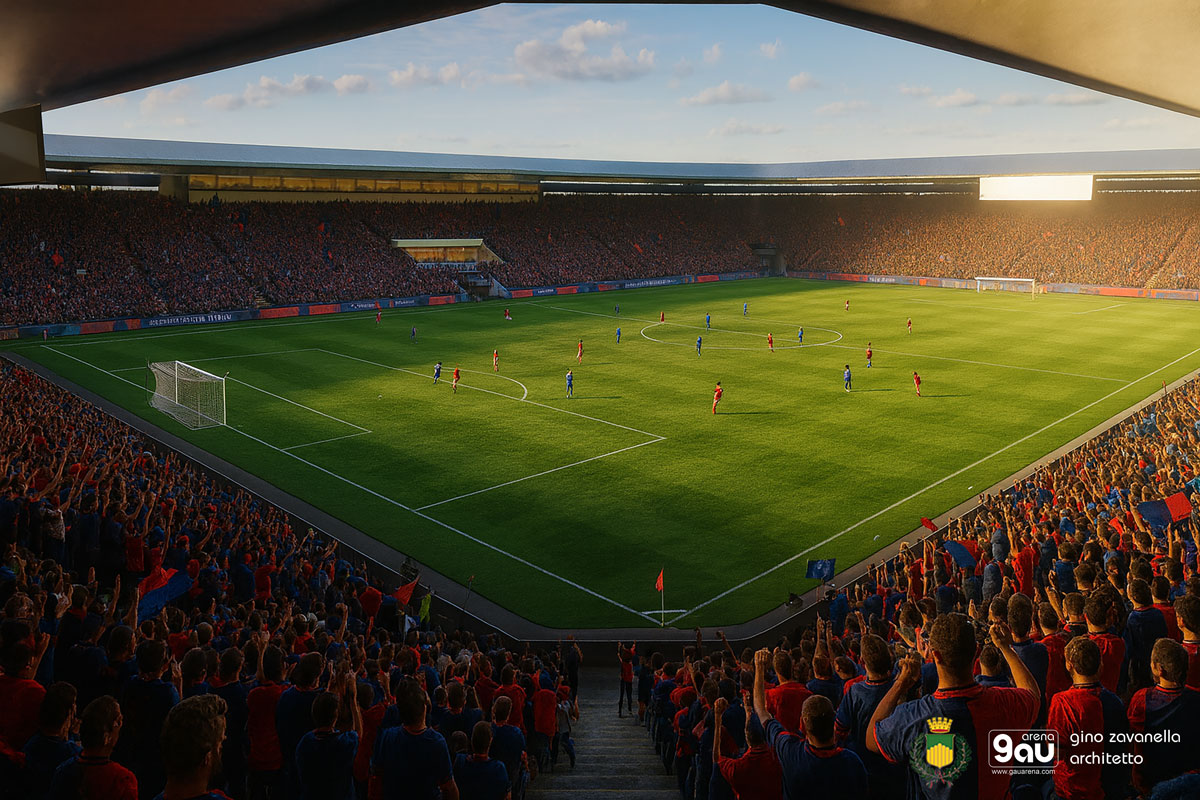 La prima fase dei lavori, che si dovrà concludere obbligatoriamente entro il 2027, prevede la realizzazione delle nuove curve a 6,18 metri dal campo (le più vicine in Italia), dotate di servizi nel sotto tribuna.