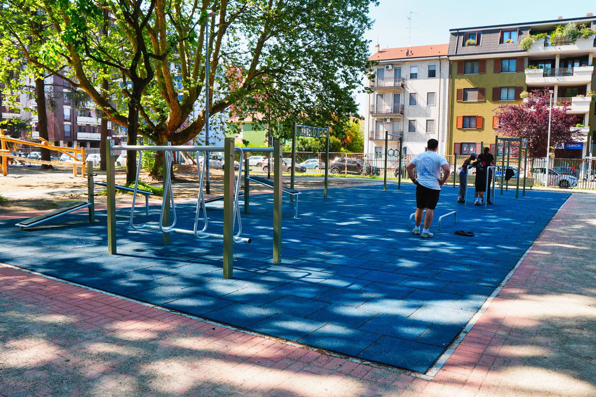 Al parco della Resistenza di Corsico si può anche giocare a basket e calcio a 5 sul nuovo playground colorato e fare fitness outdoor nell’area calisthenics.