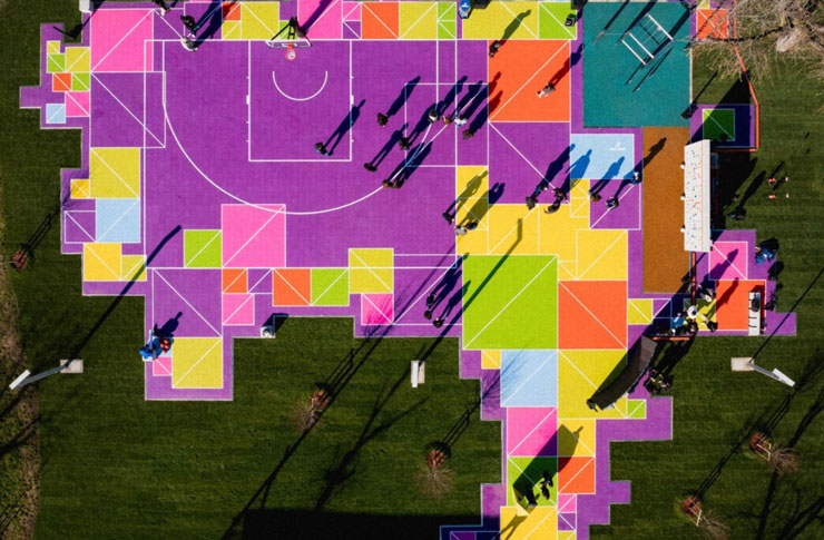 Al centro dell’area un edificio servizi ospiterà spazi polifunzionali (campo polivalente 25×15 m per calcio a 5, pallavolo, minibasket; palestra; bar con funzionamento interno ed esterno), 4 spogliatoi per gli atleti e 2 destinati agli istruttori.