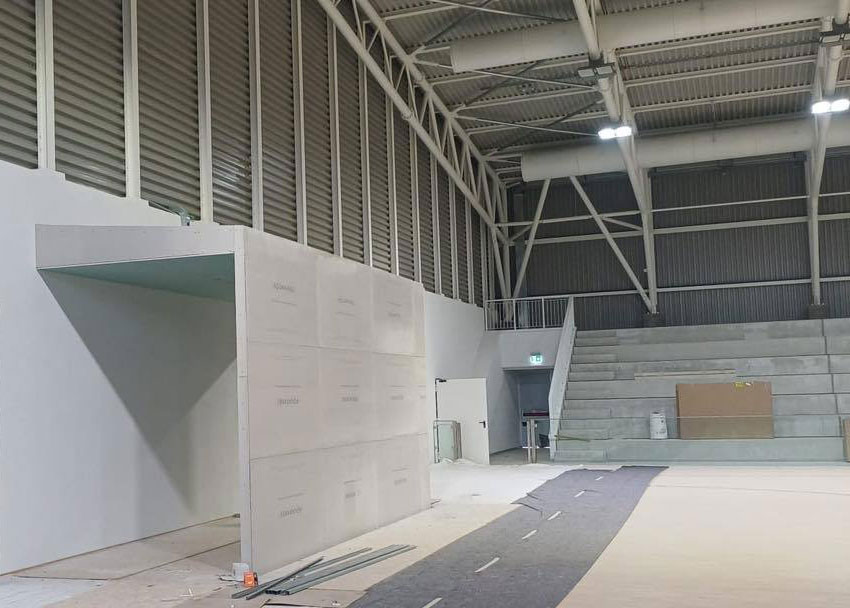 Fasi di cantiere al palasport di Favaro, di recente completato.
