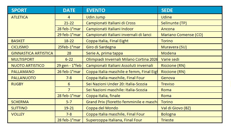 Grande sport in Italia: il calendario di febbraio