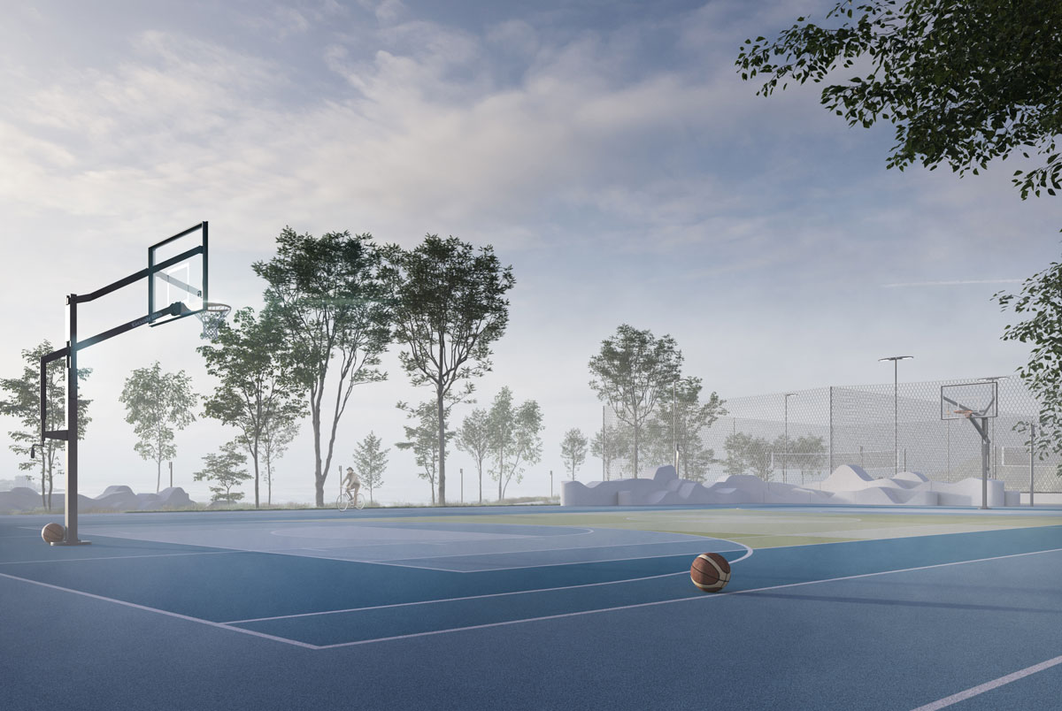 Campi da tennis, pallacanestro, beach volley e skatepark si svilupperanno in un’area storica della città , intrecciandosi nel paesaggio, nel rispetto della memoria del luogo.