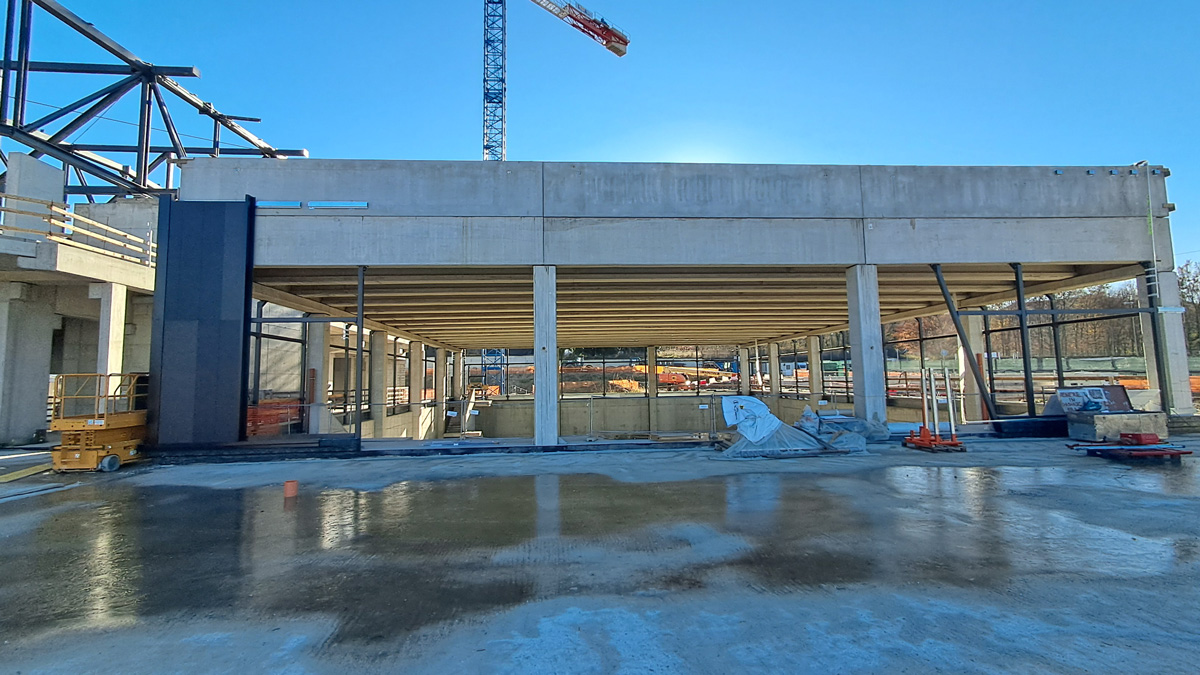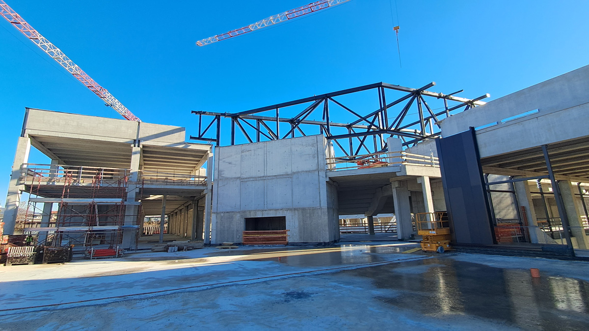 All’esterno, attualmente in costruzione, ci saranno un edificio destinato al food che sarà gestito da Bennet e una superficie di vendita: qui, l’area centrale sarà un parcheggio all’aperto, che consentirà l’accesso all’area hospitality. Tutto è stato studiato per consentire funzionalità ed efficienza anche negli accessi nelle diverse configurazioni.