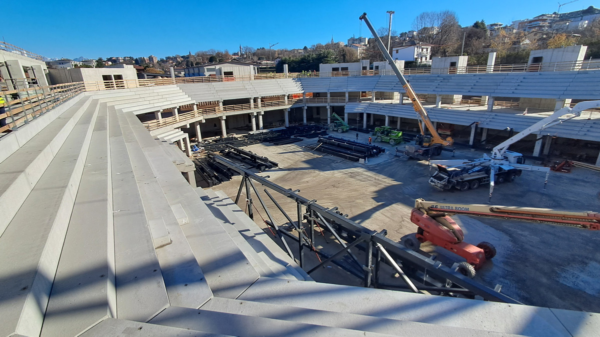Nei giorni scorsi siamo stati in visita al cantiere di Cantù Arena e possiamo affermare che la realizzazione sta effettivamente portando avanti con coerenza il “sogno” di un palazzetto che accolga le partite di basket della locale Pallacanestro Cantù ma possa diventare al tempo stesso un luogo, una “casa” per i cittadini, anche durante altri eventi.