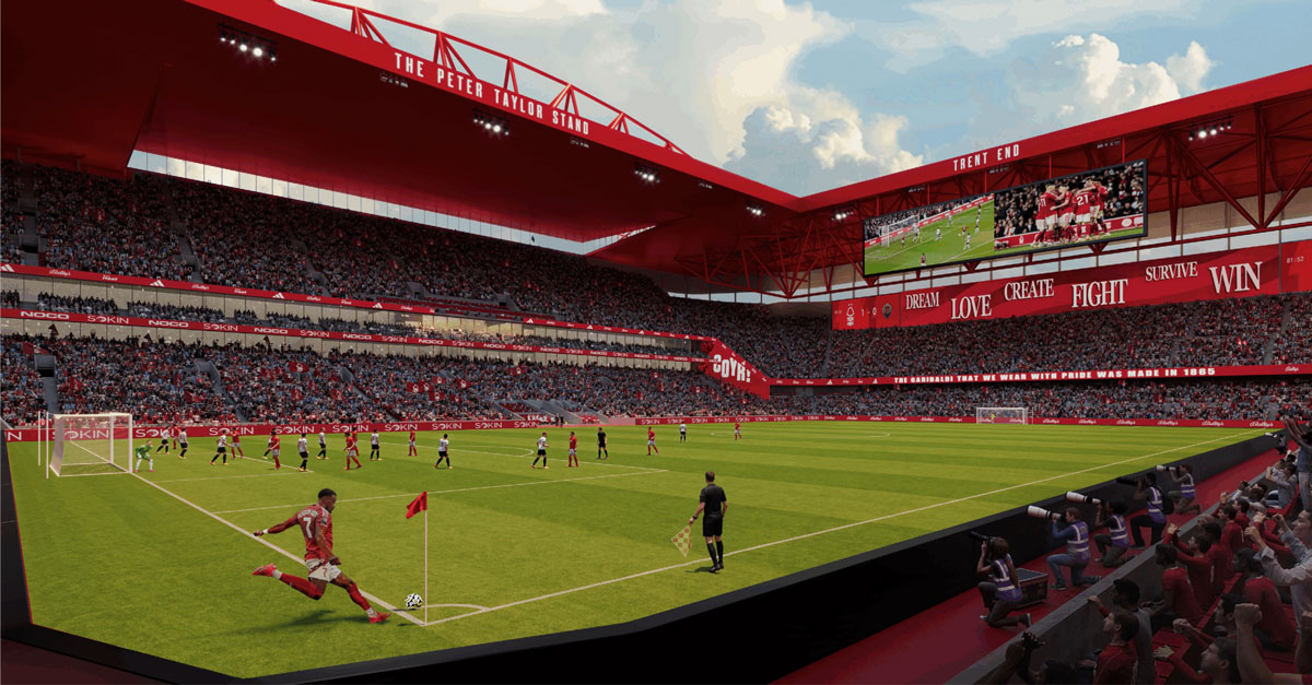 Ora, con la nuova proposta, il Nottingham Forest Football Club progetta di ampliare la capienza dello stadio a 52.500 posti a sedere, con un investimento previsto di 130 milioni di sterline, che porterà City Ground a eccellere nella regione britannica delle East Midlands, con una migliorata ospitalità , nuova fan zone e un museo.