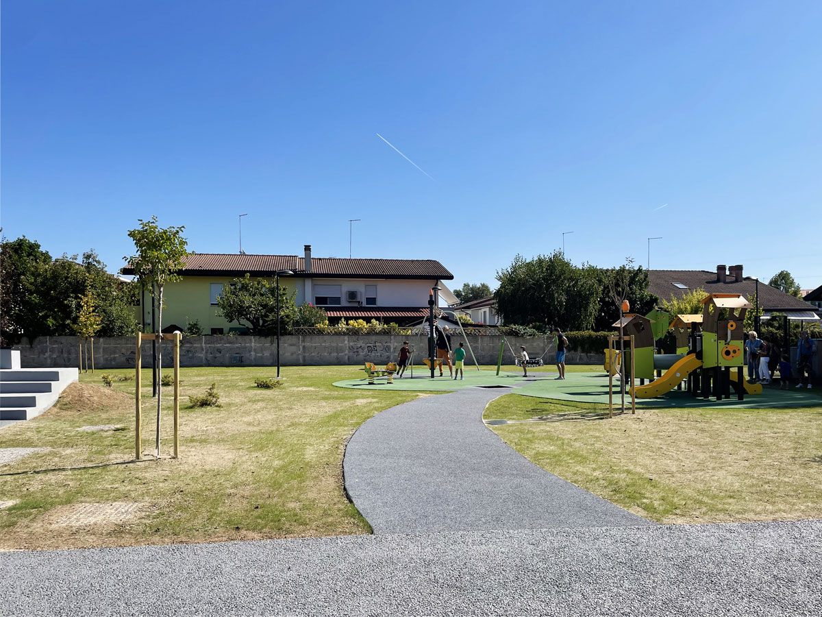 Il parco accoglie nuovi giochi per bambini, un anfiteatro, un parcheggio e una targa commemorativa.