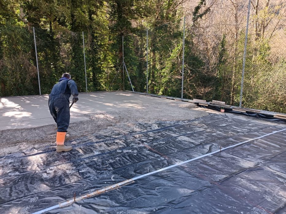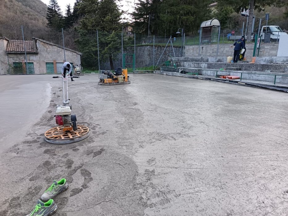 L’intervento è stato realizzato con la creazione di un nuovo sottofondo in calcestruzzo fibrorinforzato, esente da giunti di contrazione con un unico giunto in corrispondenza della rete da gioco. Questo sistema tra i suoi vantaggi ha una elevata durabilità nel tempo grazie alla resistenza all’usura e all’abrasione, soprattutto per superfici esterne.