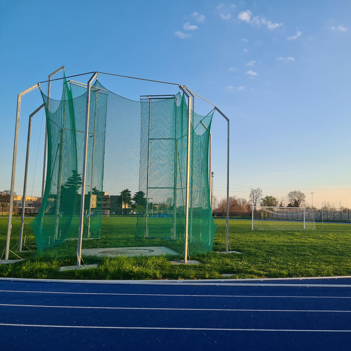 • una pista da atletica da 400 metri a 6 corsie con pedane per il salto in alto, in lungo, con l’asta, lancio del peso, del martello e del giavellotto e una nuova tribuna con più di 500 posti;