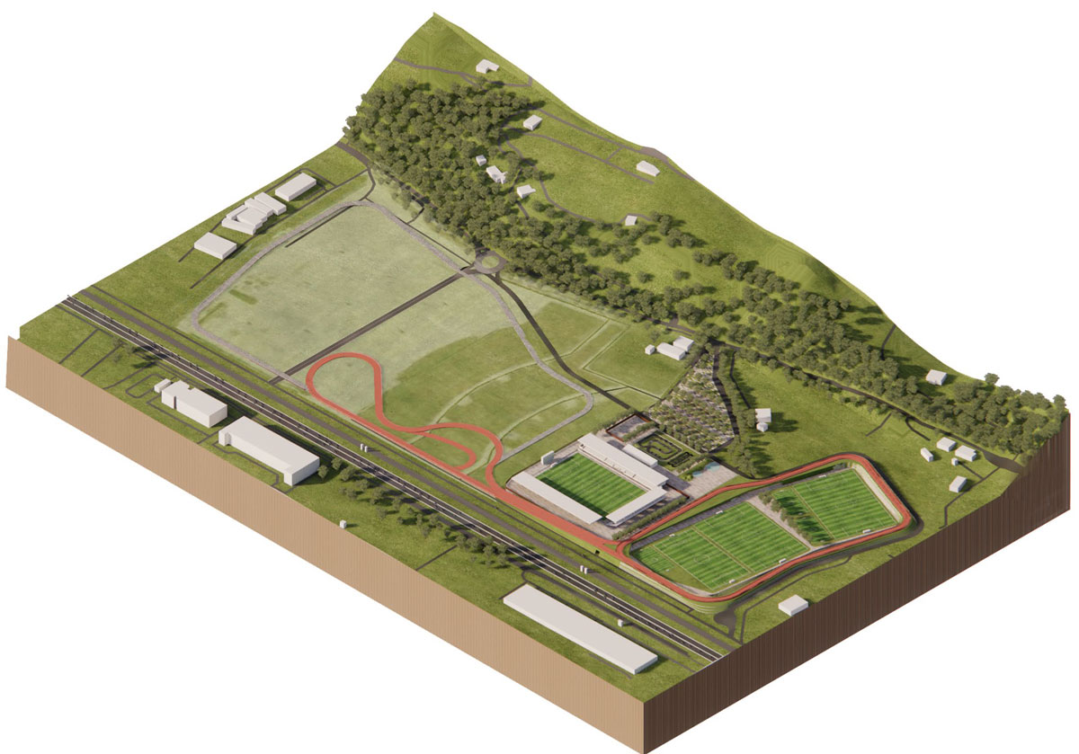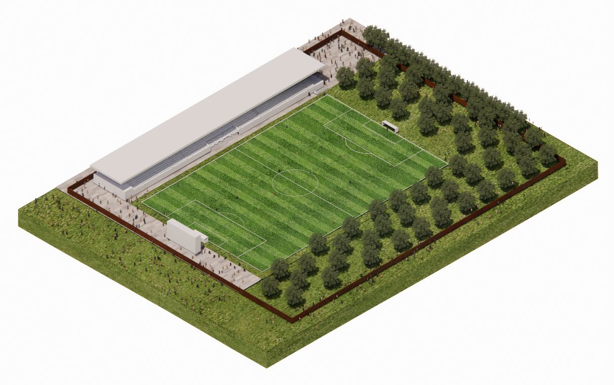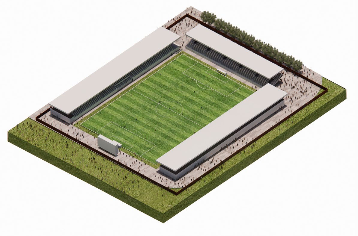 A San Vincenzo, su un’area di 10,2 ettari ci sarà il nuovo stadio, che accoglierà fino a 5500 spettatori distribuiti su tre tribune; intorno, saranno realizzati altri campi da calcio regolamentari per allenamento e tre piastre polivalenti, con un’area pump track.