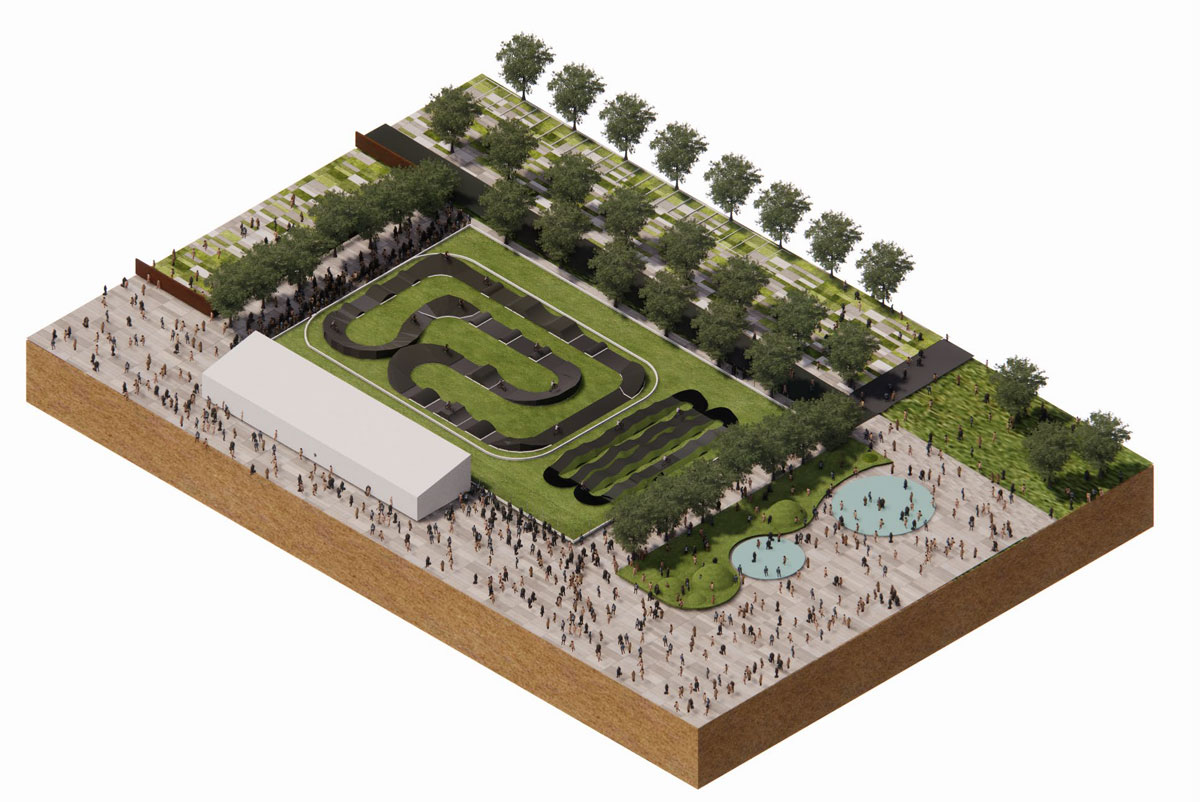 a destra, la pista da pump track prevista nell’area di San Vincenzo.
