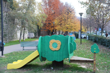 Dieci giochi accessibili a tutti sono stati collocati in sequenza lungo un percorso di 160 metri, arricchendo la passeggiata verde che si snoda sotto le mura del centro storico di Como.