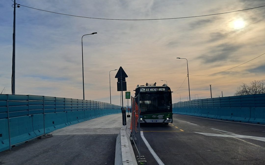 Per raggiungere l’impianto da Rogoredo – a meno di arrivarci a piedi – ci sono navette sostitutive dell’ATM, già in funzione nei  tre giorni dei test-event (foto sopra a destra).