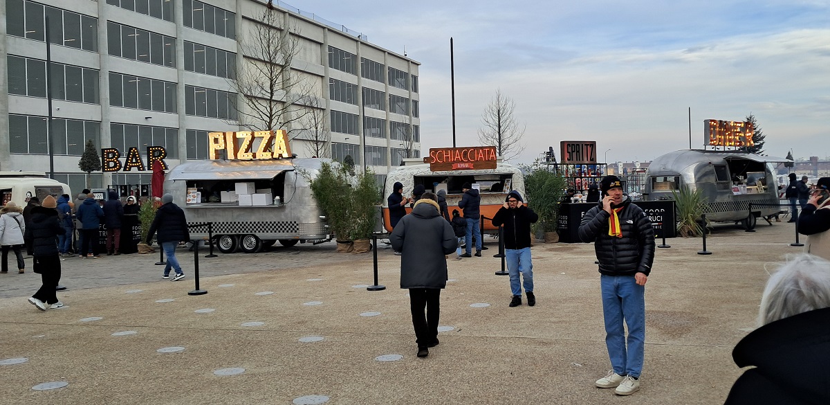 Attualmente, la piazza è sede del sistema di ristorazione “all’italiana”, con una serie di food truck come quelli che circondano lo stadio, forse in attesa dell’apertura di spazi dedicati all’interno dell’Arena.