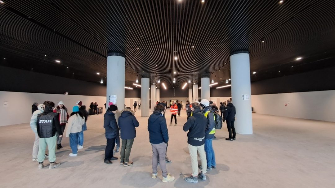 Il cantiere del  futuro quartiere di Santa Giulia è delimitato da cesate color azzurro “Milano-Cortina”, oltre le quali l’Arena – progettata dallo studio Arup con la veste architettonica affidata David Chipperfield – emerge per ora come un monumento isolato. Del resto il quartiere (già oggetto di un masterplan ultraventennale, inquadrato nel Piano Integrato di Intervento Montecity-Rogoredo, più volte riveduto e corretto) è ancora tutto da costruire, tra residenze, centri commerciali e parco urbano (nella gallery, due rendering in cui è visibile, sulla destra, l’Arena).