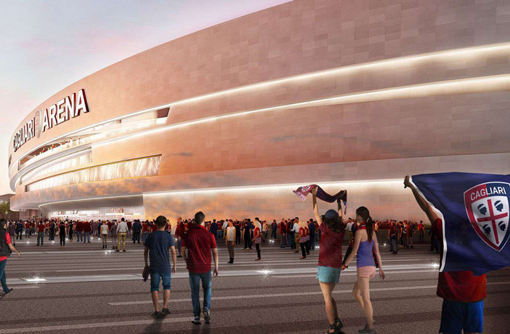 Il profilo dorato e luminescente si eleva dalla cintura verde cittadina verso l’Atlantico: oltre 10mila metri quadrati con 19,200 triangoli in alluminio color champagne. Al tramonto, lo stadio crea uno spettacolo di luci mentre la facciata risplende e si illumina anche grazie ai 70 chilometri di strisce LED avvolte a spirale intorno alla struttura.