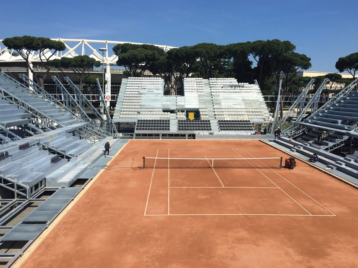 Lo stadio temporaneo agli Internazionali d’Italia