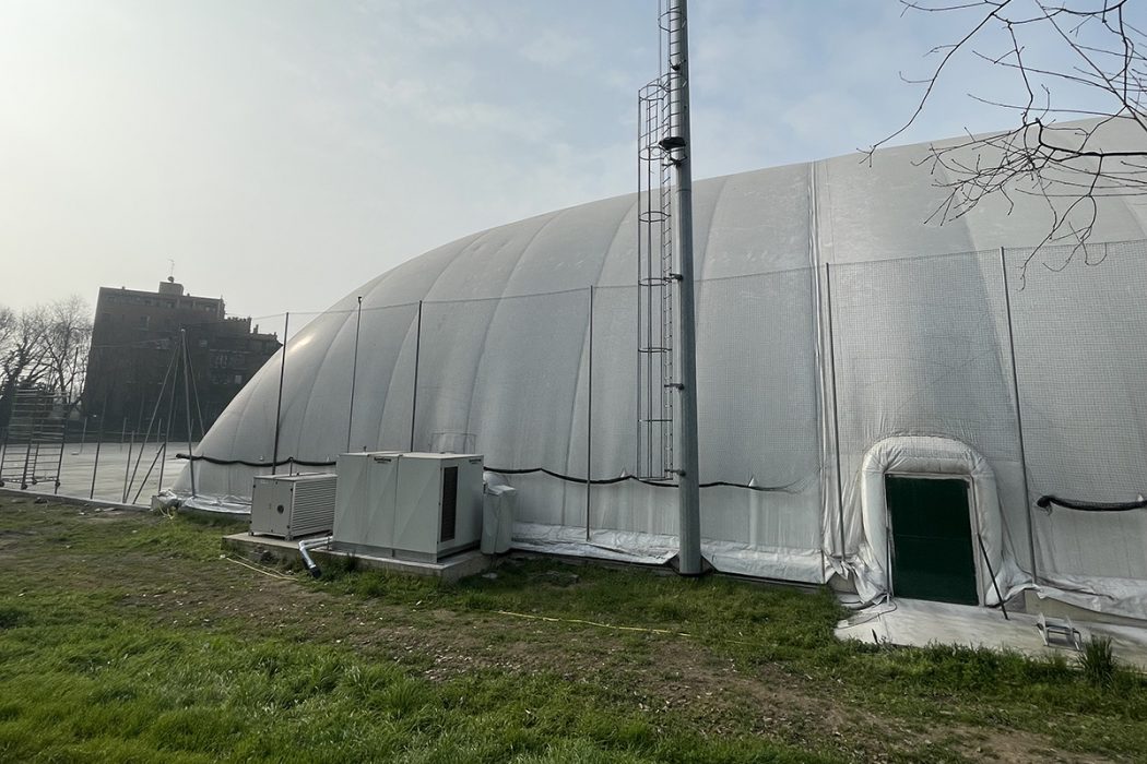 Il centro è costituito da due pressostrutture ed una tensostruttura che ricoprono campi da Beach Volley e campi da Padel, tutti climatizzati dalle unità di riscaldamento Apen Group serie AH Sport, appositamente studiate per l’utilizzo in abbinamento ad un impianto ad acqua calda collegato ad un sistema di teleriscaldamento.