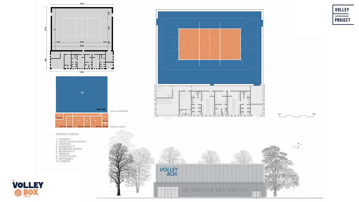 All’insegna della sostenibilità gestionale, dell‘efficienza energetica e della qualità architettonica, la Volley Box è stata sviluppata dall’ing. Elio Sannicandro e dall’arch. Valentina Spataro partendo dall’esigenza di incrementare l’offerta di infrastrutture sportive di base garantendo tempi certi di realizzazione.