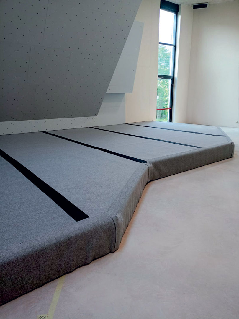 Si tratta di materassi da boulder realizzati su misura e sagomanti ad hoc, in modo tale da seguire perfettamente la conformità e forma delle pareti.
