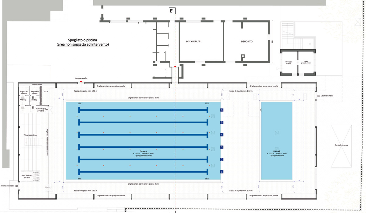 Il progetto è stato assoggettato a parere CONI ed è stata successivamente richiesta, dal gestore, l’omologazione da parte della FIN per poter svolgere le competizioni agonistiche.