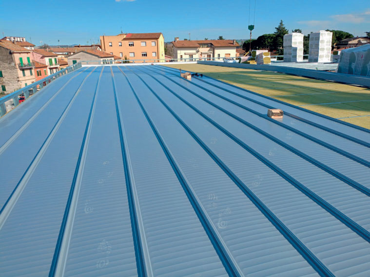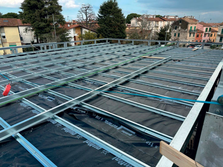 sotto, i pannelli di copertura con la sottostante tralicciatura.