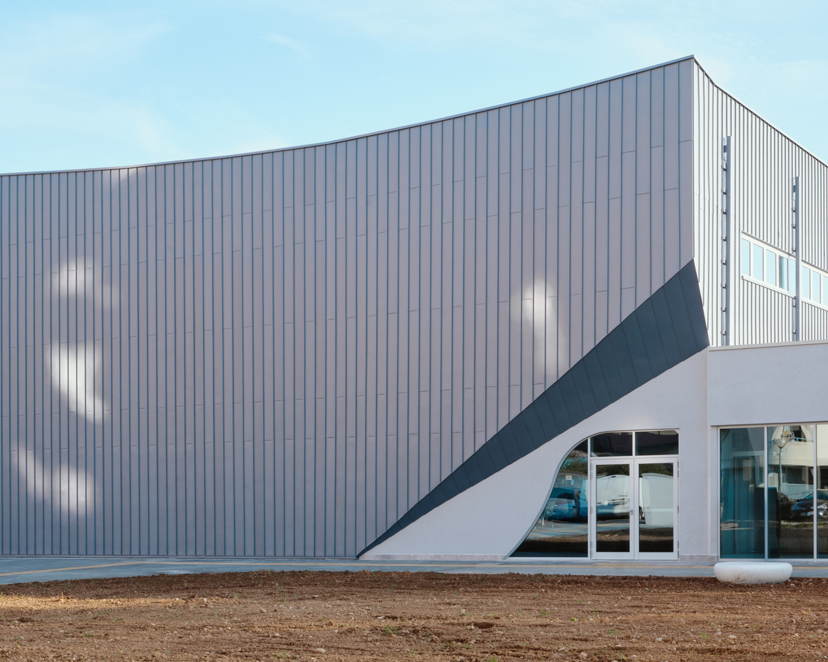 Il rivestimento, in alcuni punti, è proiettato verso l’esterno grazie a una sottostruttura aggettante rispetto alla struttura principale del volume. Questo accorgimento permette di creare spessori variabili e dona alla facciata un effetto tridimensionale e dinamico, che anima la superficie con giochi di profondità e movimento.