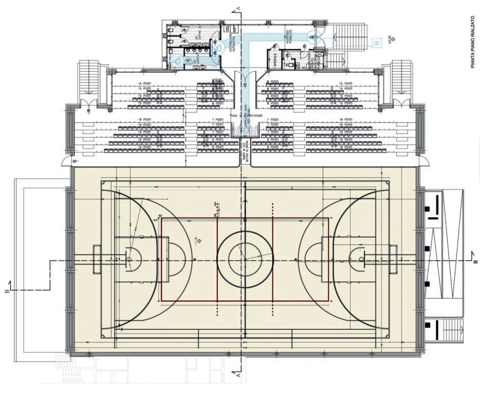Tale riqualificazione passa attraverso la sistemazione di alcuni elementi fondamentali: l’abbattimento delle barriere architettoniche sia per gli atleti che per gli spettatori, tema imprescindibile in un impianto moderno ma nel nostro caso non del tutto risolto; il rifacimento dell’impianto di riscaldamento; la sostituzione del pavimento di gioco, precedentemente in gomma, da trasformare in un moderno parquet in legno; l’efficientamento energetico dell’edificio attraverso un sistema a cappotto e la sostituzione dei serramenti. Infine, la riorganizzazione dell’ingresso del pubblico con il rifacimento dei servizi igienici.