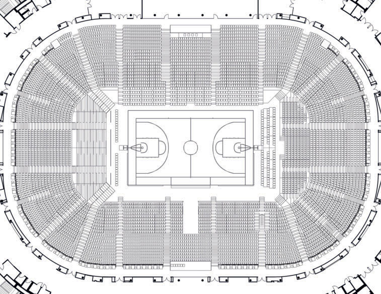 Pianta della SAP Garden: configurazione per hockey su ghiaccio, basket ed eventi.