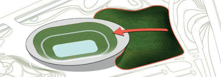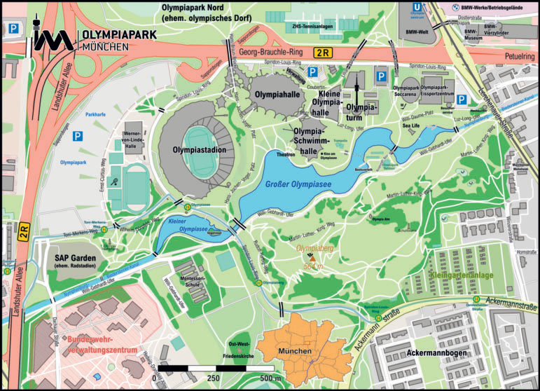 L’aggiunta di una nuova struttura nel paesaggio protetto del Parco Olimpico progettato da Behnisch & Partner in occasione della XX Olimpiade, ha rappresentato una sfida progettuale complessa, dovendo rispettare l’integrità del parco e allo stesso tempo soddisfare le impegnative esigenze spaziali di un impianto sportivo di livello mondiale. Per risolvere questo problema, il team di progettazione della SAP Garden di Monaco ha nascosto le tre piste di pattinaggio aggiuntive dell’arena sotto una collina artificiale che prosegue in modo organico i percorsi esistenti e il design paesaggistico del parco. La stessa arena è di forma ovale e asimmetrica sia nell’altezza che nella forma, cosa che, insieme al tetto verde, permette all’edificio di fondersi con il parco e il paesaggio urbano.