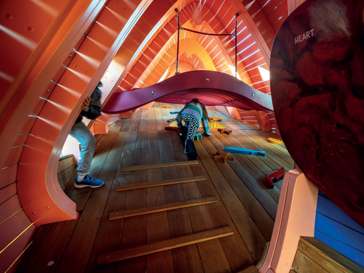 Queste strutture ludiche altamente interattive evocano un’immersione nella vita del fiume Hudson, invitando e stimolando i bambini a esplorare e imparare. Le creature lunghe 24 metri possono essere scalate sia all’esterno che all’interno, i bambini possono viaggiare attraverso questi pesci in via di estinzione, imparando a conoscere la loro anatomia, il loro habitat e la loro natura mentre giocano.
